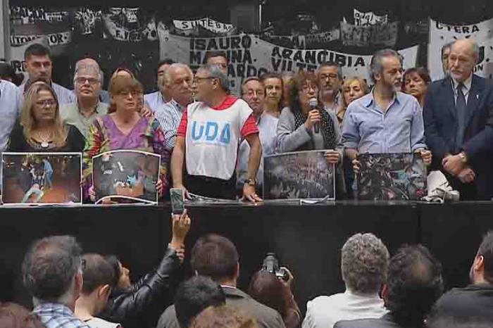 'Es inadmisible, es un límite ético, no vamos a permitir que repriman a los docentes. Ctera tiene en su historia más de 600 educadores detenidos desaparecidos. El Gobierno debe convocar al diálogo, cumplir la Ley, no apalear ni reprimir', sostuvo la víspera la secretaria general de ese sindicato, Sonia Alesso.